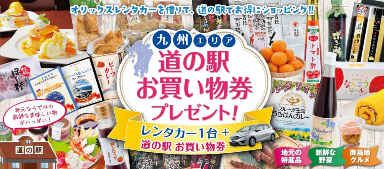 オリックスレンタカーは、九州エリアの道の駅と連携した特典付きレンタカープランを展開している。本プランでは、レンタカーの利用者に対し、対象となる九州エリア64カ所の道の駅で利用可能な「お買い物券500円分」をプレゼントするものであり、ドライブと地域消費を同時に促進する取り組みである。
