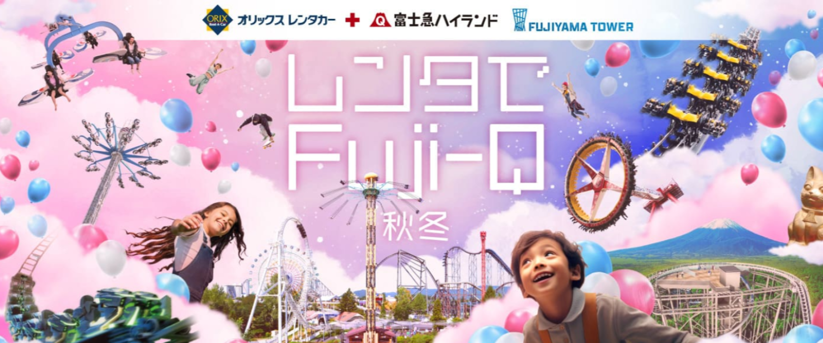 オリックスレンタカーは、富士急ハイランドの1日フリーパスが付いたお得なセットプラン「レンタでFuji-Q 秋冬」を販売している。対象期間は2025年10月1日から2026年3月31日までで、レンタカーとフリーパスをまとめて予約できる特別プランである。
