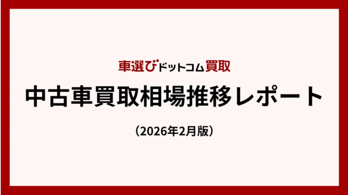 株式会社ファブリカコミュニケーションズが運営する中古車査定サイト「車選びドットコム買取」は、過去2~5年の中古車買取データをもとに、2026年2月以降の中古車買取相場の見通しをまとめたレポートを公開した。レポートによると、中古車買取相場は年明けに過去5年で最高値を更新し、平均買取価格は110万円を超えた。2月には115万円近くまで上昇する見込みであり、高値圏での推移が続くと予測されている。