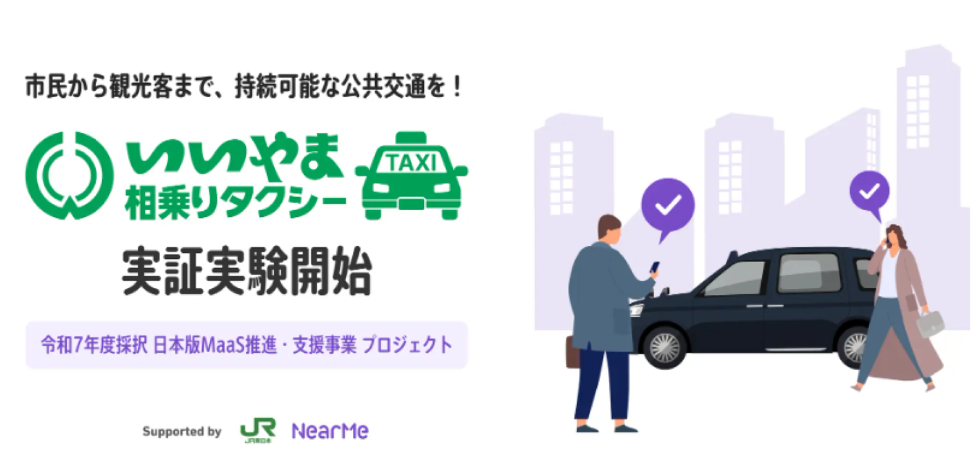 移動課題の解決に取り組む株式会社NearMeは、飯山市が実施する「いいやま相乗りタクシー」の実証実験に参画し、東日本旅客鉄道株式会社が開発するシステムと連携して配車システムの提供を行う。本取り組みは、日本版MaaS推進・支援事業の一環として行われるもので、市民から観光客まで誰もが使える持続可能な移動サービスの構築を目指す。