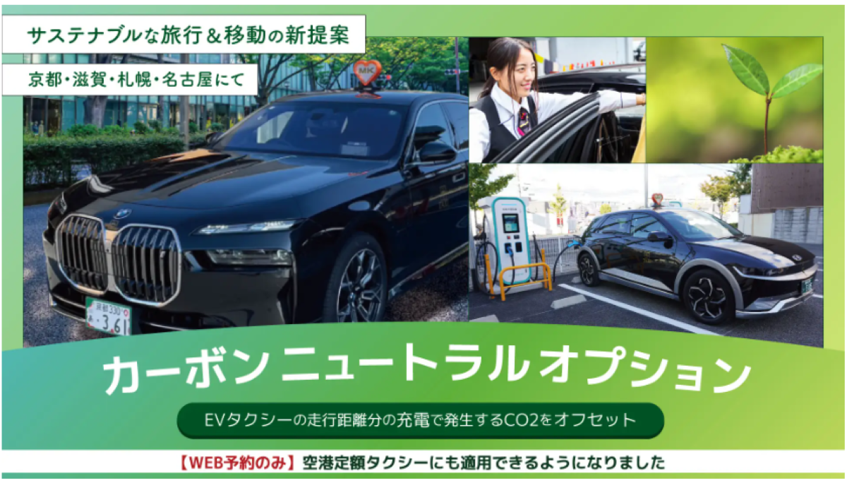 サービスは2025年1月に京都で貸切から開始し、同年4月には京都・滋賀・札幌・名古屋の4エリアへ拡大。空港定額への適用も進み、より多くの利用者が気軽に脱炭素移動を選択できる環境が整いつつある。2025年度上半期は延べ27件・総走行距離1,452kmに対し115kgのCO2オフセットを実施した。内訳は京都MKが25件、滋賀MKが2件であり、地域に根ざした取り組みが着実に進展している。