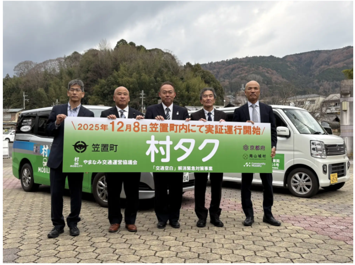笠置町は、南山城村および京都府と連携し、南山城村で運行中の公共ライドシェア「村タク」の運行エリアを拡大し、2025年12月8日より笠置町内および隣接地域を含む実証運行を開始した。運行はCommunity Mobility株式会社への委託により実施される。