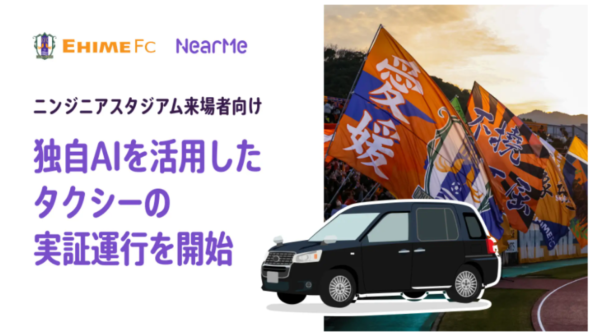 移動課題の解決に取り組むソーシャルデザインカンパニーのNearMeと、Jリーグクラブの愛媛FCは、2026年2月28日に開催される明治安田J2・J3百年構想リーグ地域リーグラウンド第4節「愛媛FC対徳島ヴォルティス戦」において、ニンジニアスタジアムと周辺地域を結ぶAI活用タクシーのトライアル運行を実施する。試合観戦時に集中する移動需要に対応し、来場者の利便性向上を図る取り組みである。